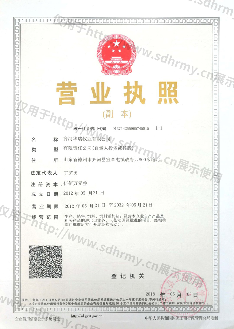 龍昌華瑞榮獲多項(xiàng)榮譽(yù)資質(zhì),以生產(chǎn)安全、綠色、高效的飼料添加劑,服務(wù)于飼料行業(yè)與畜禽養(yǎng)殖場(chǎng),國(guó)家新飼料添加劑(新飼證字 2014-03)